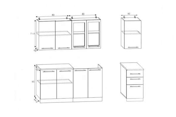 Высота верхних шкафов: 718 мм